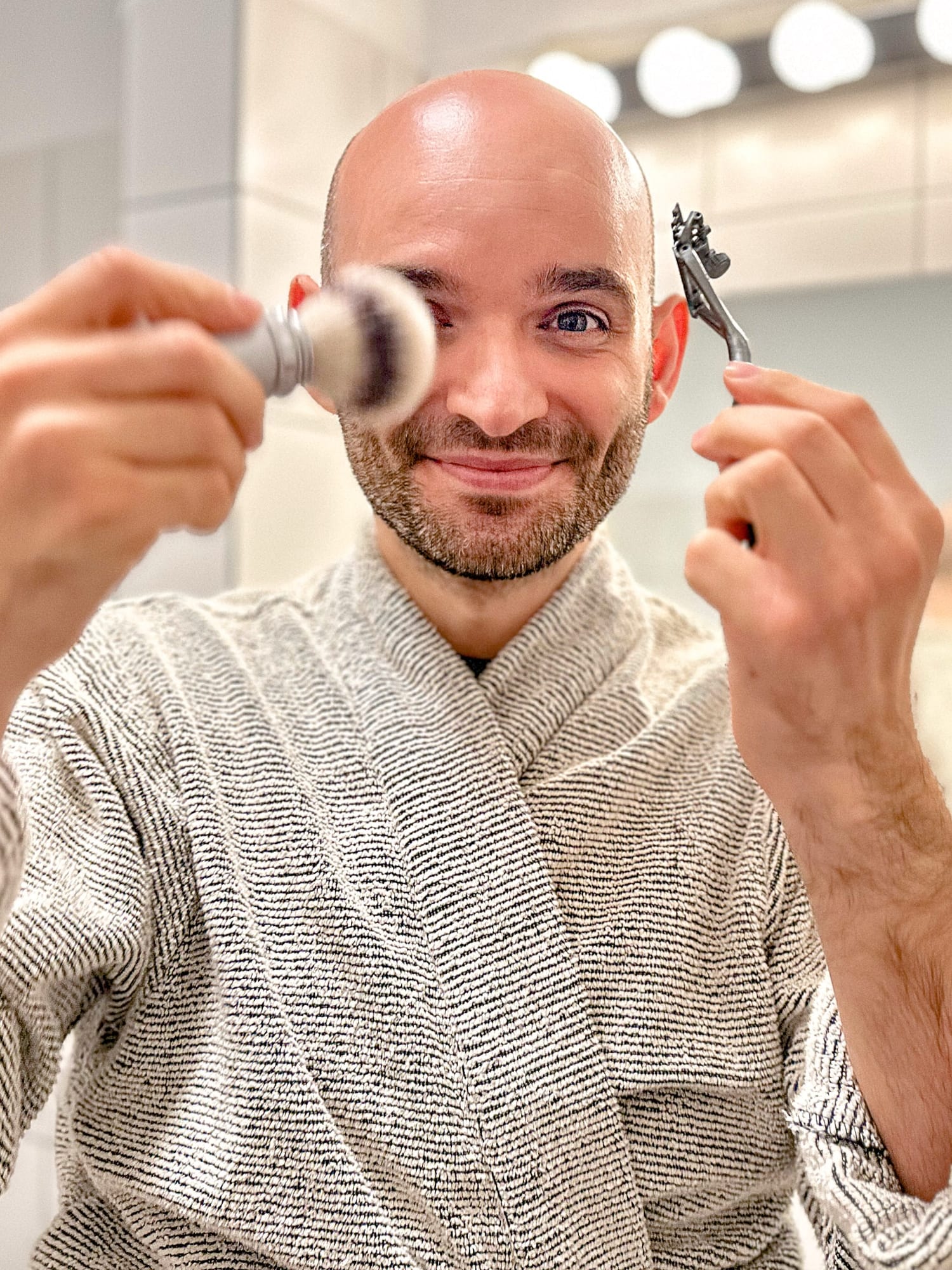 Ich rasiere meine Glatze.